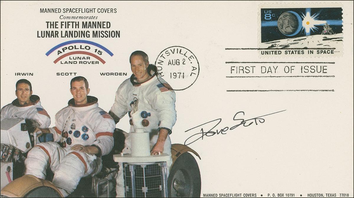 Dave Scott - FDC, bearing a cachet honoring the Apollo 15 mission, signed in black ink