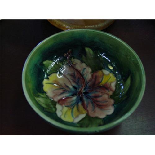 a tiny hairline at the top edge and is priced with that in mind. Please furnish zip code for shipping quote. Thanks. </td></tr><tr> <td> </td></tr><tr> <td>Reference #: 1005009</td></tr><tr><td>Condition:Very Good to Excellent</td></tr><tr><td>Year:ca. 1920's</td></tr><tr><td>Maker:Moorcroft</td></tr><tr><td>Height:2 1/2"</td></tr><tr><td>Width:5 1/4"</td></tr><tr><td>Title:Moorcroft Bowl Hibiscus Pattern</td></tr><tr><td>Location:Florida</td></tr></table>