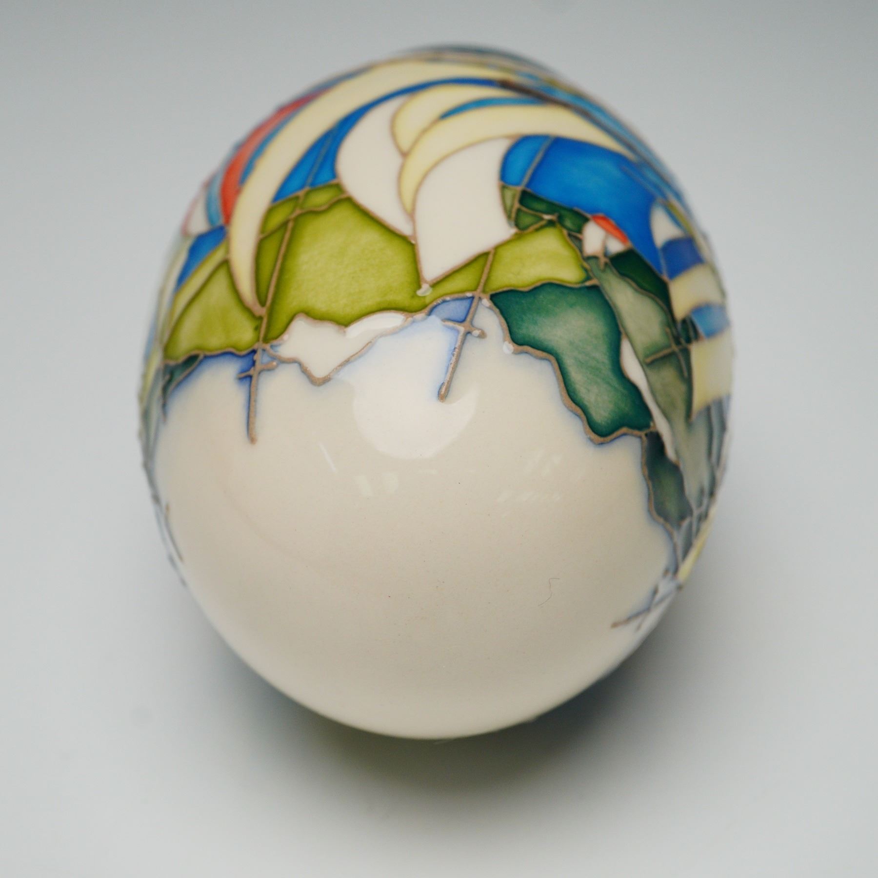 Moorcroft Porcelain Colored Egg, Catching the Wind