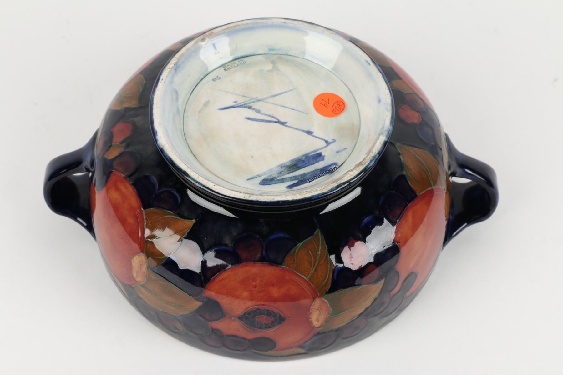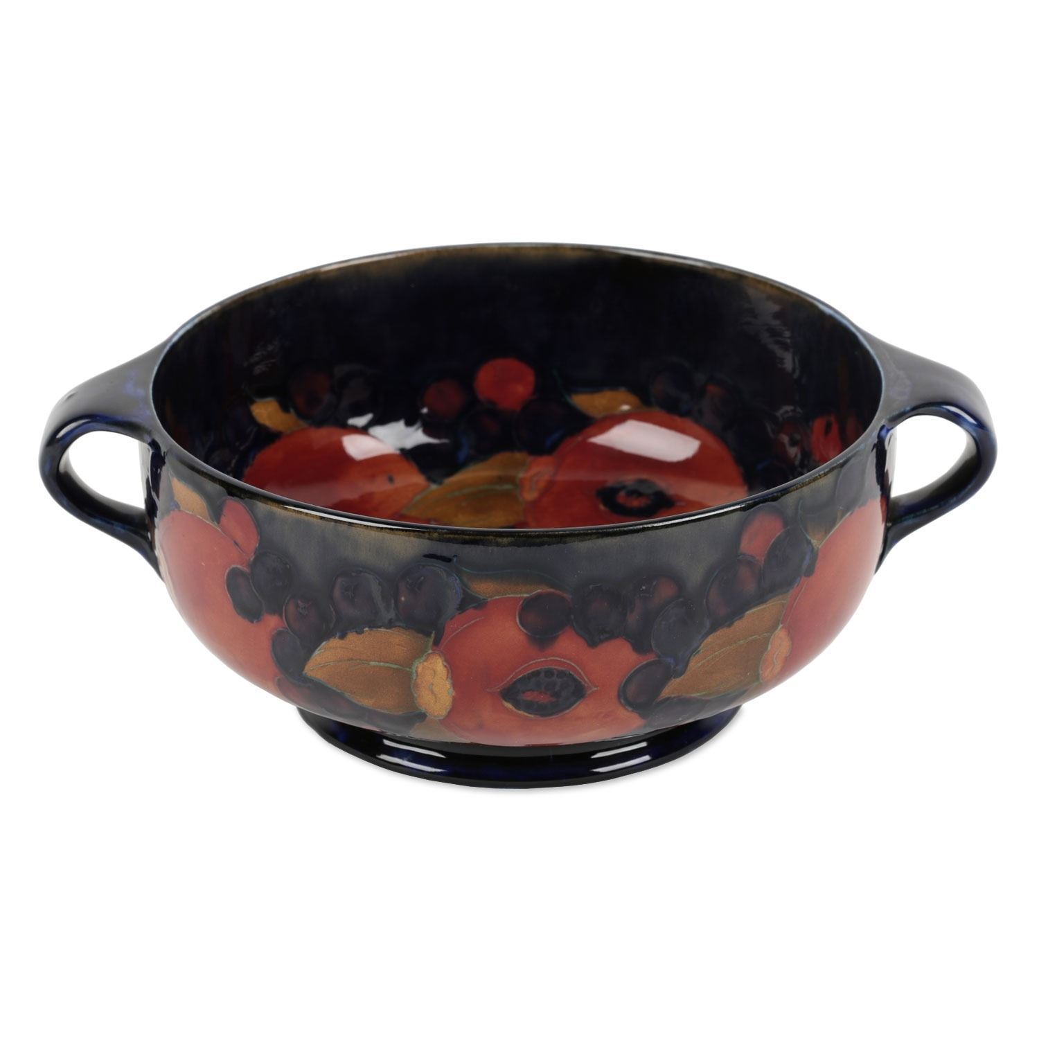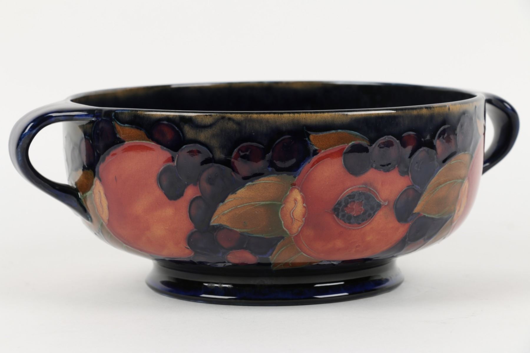 Lot 36 - Circa 1930-40. English. "Pomegranate" pattern. Incised and stamped, "William Moorcroft" and "Moorcroft, Made in England". 11" x 8.5" x 4". $300-500.