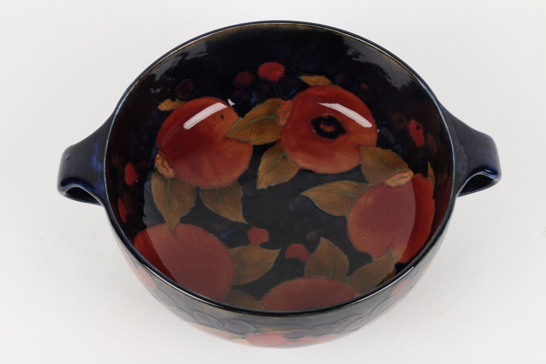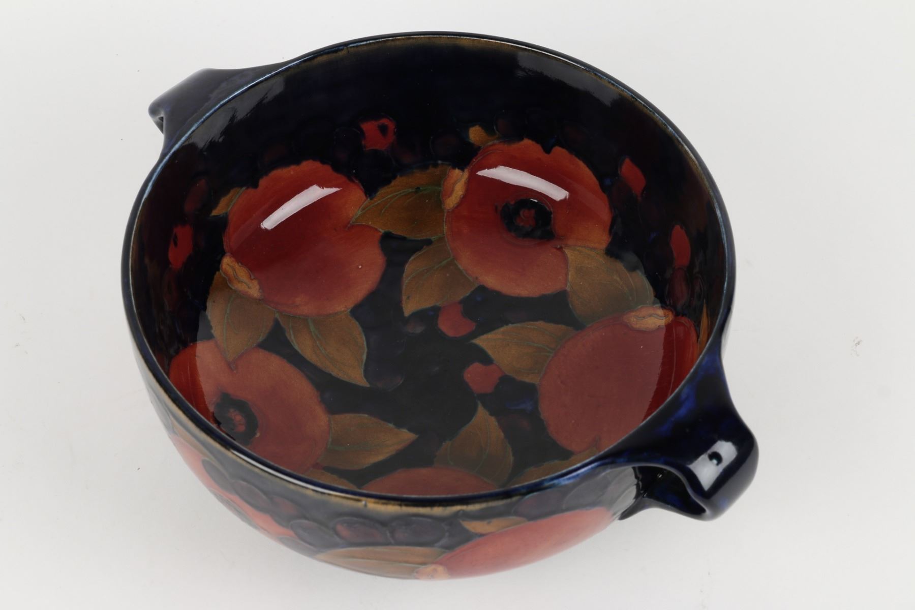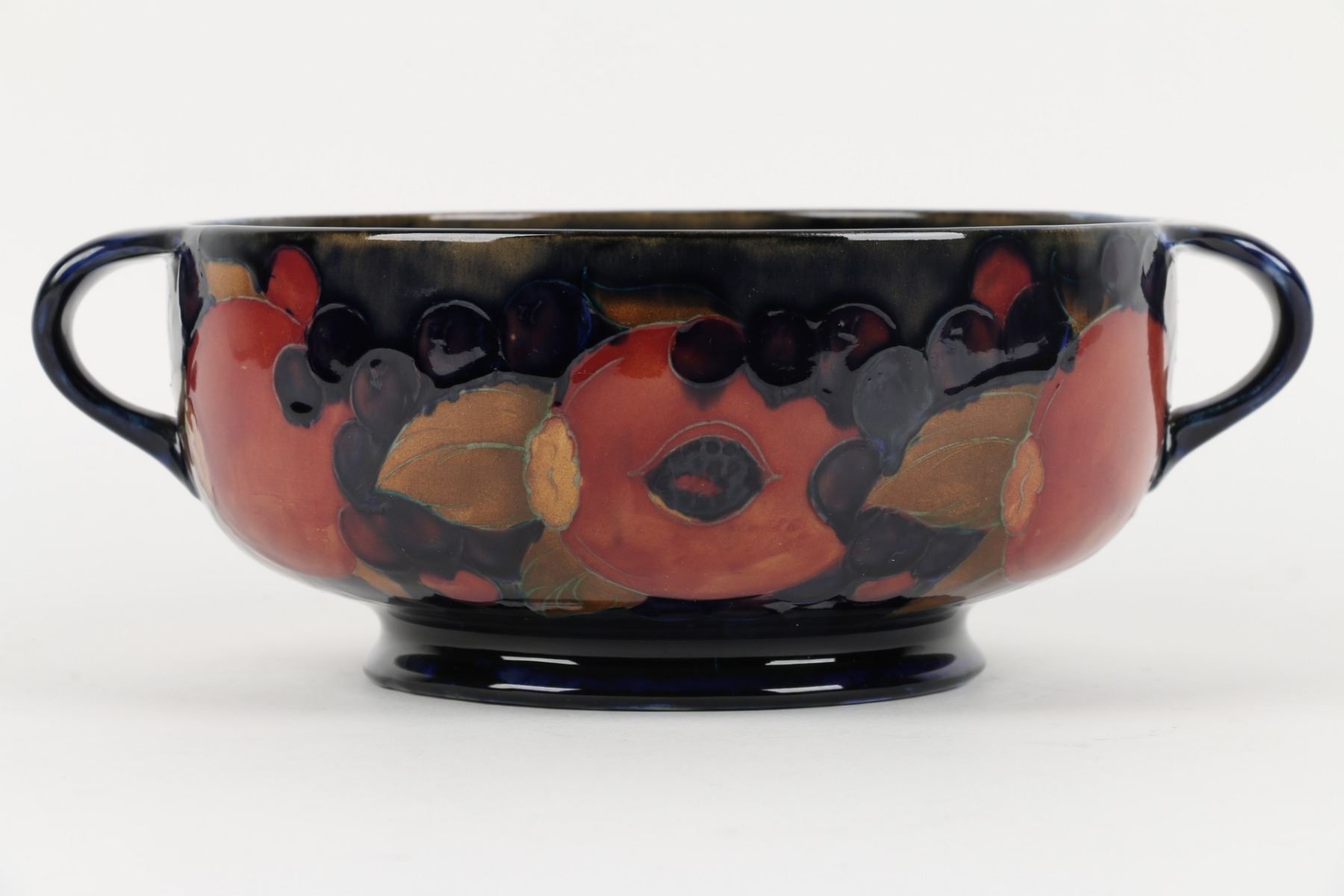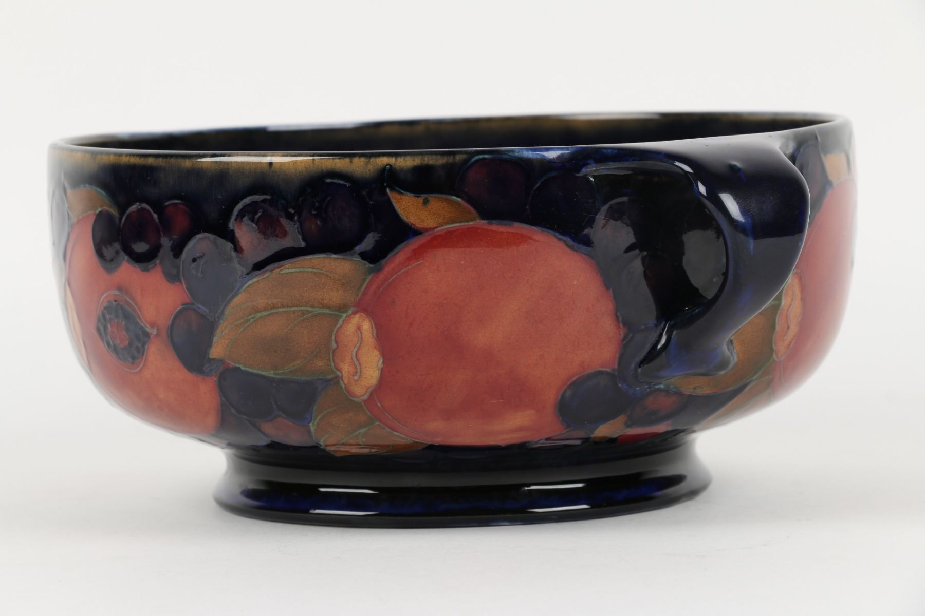 Lot 36 - Circa 1930-40. English. "Pomegranate" pattern. Incised and stamped, "William Moorcroft" and "Moorcroft, Made in England". 11" x 8.5" x 4". $300-500.
