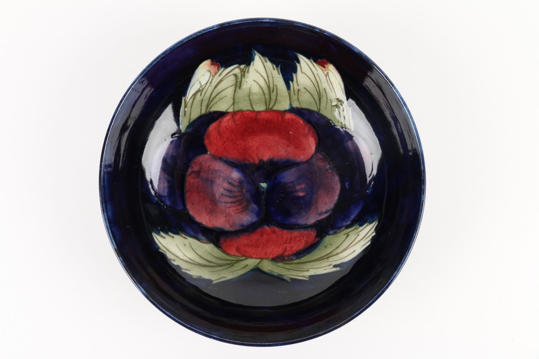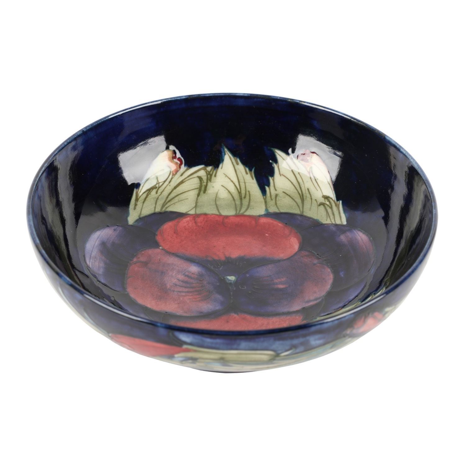 Lot 388 - London, England. "Pansy" Pattern. Marked "Moorcroft - Made in England - 88". Hand signed "Moorcroft" underside. 2.75" x 8". $200-300.