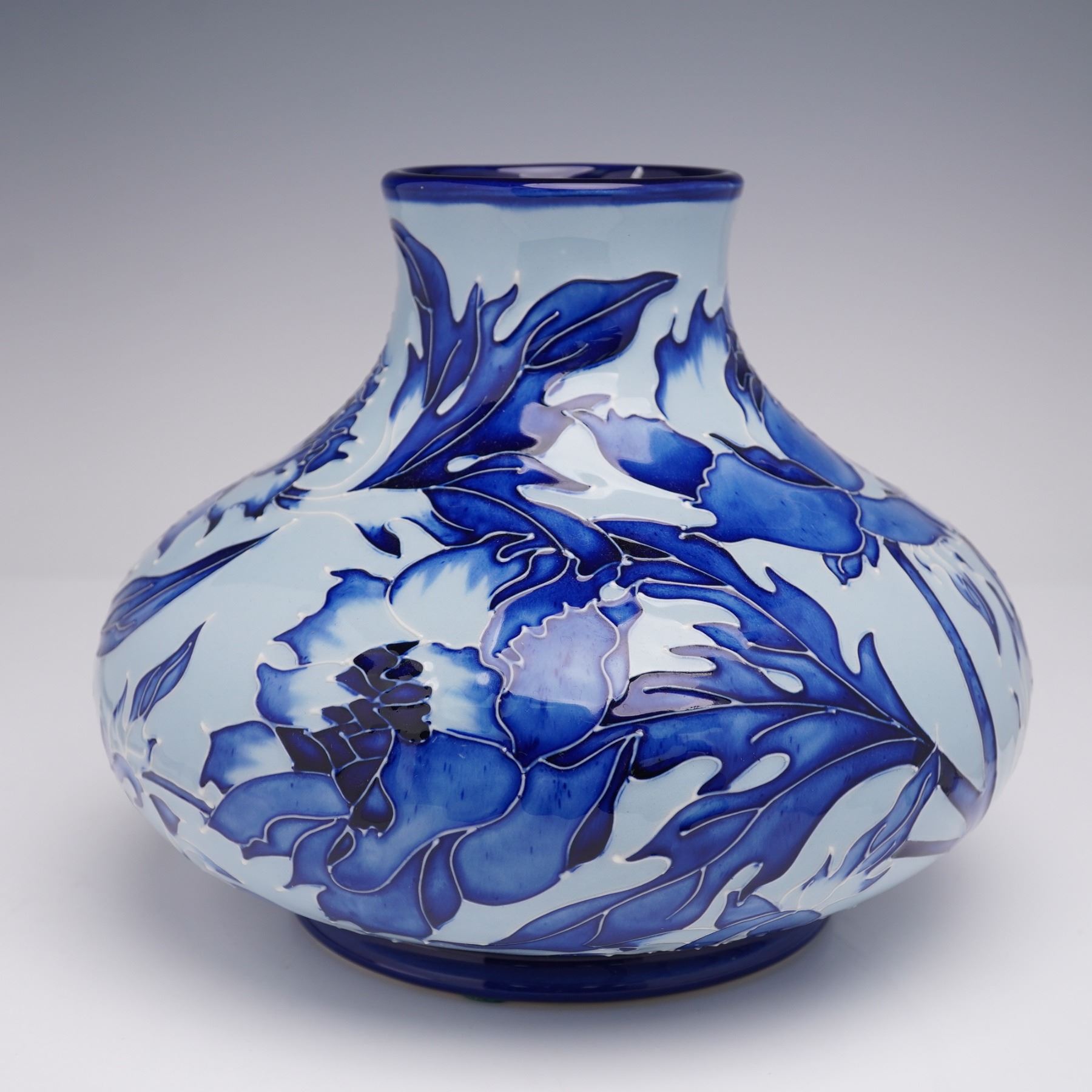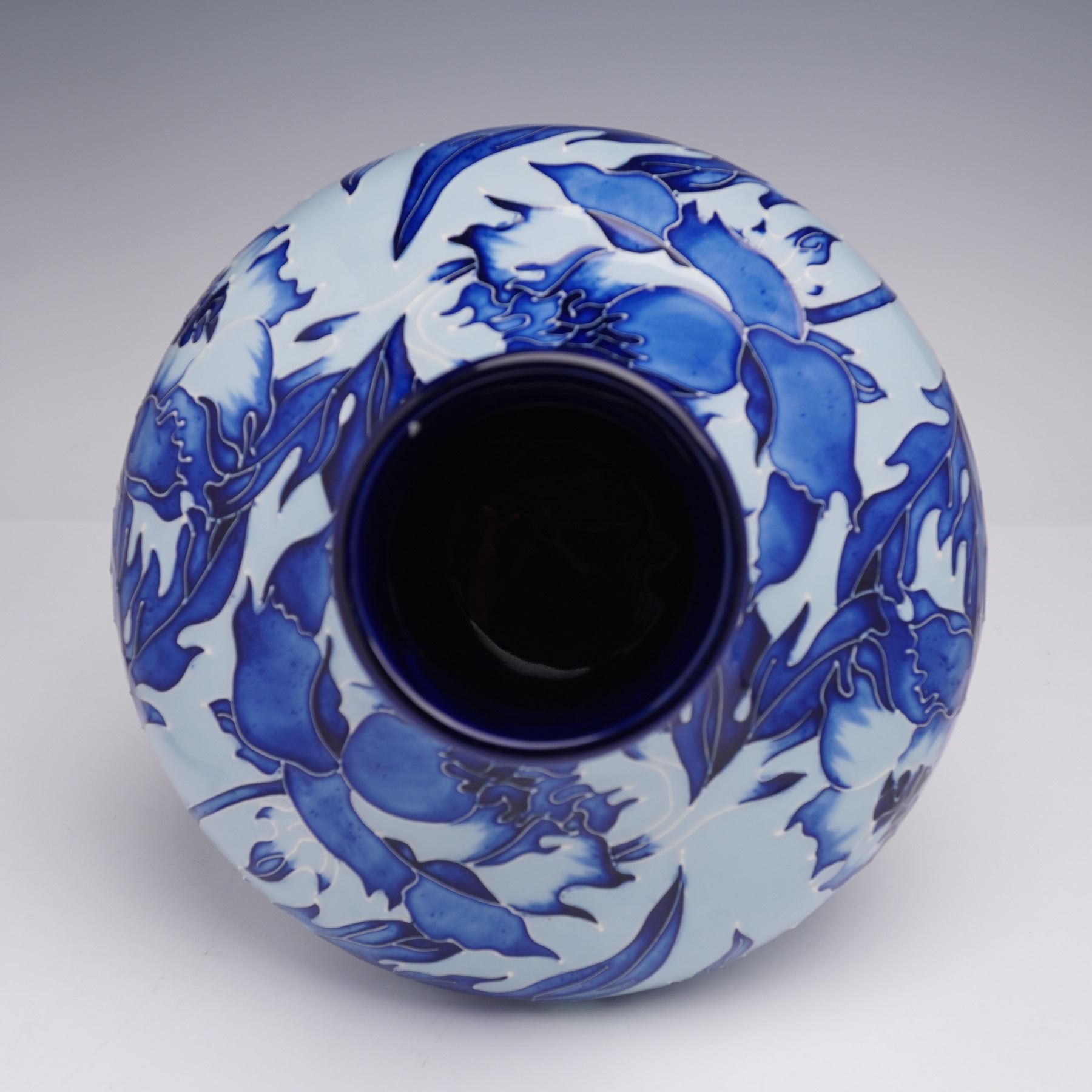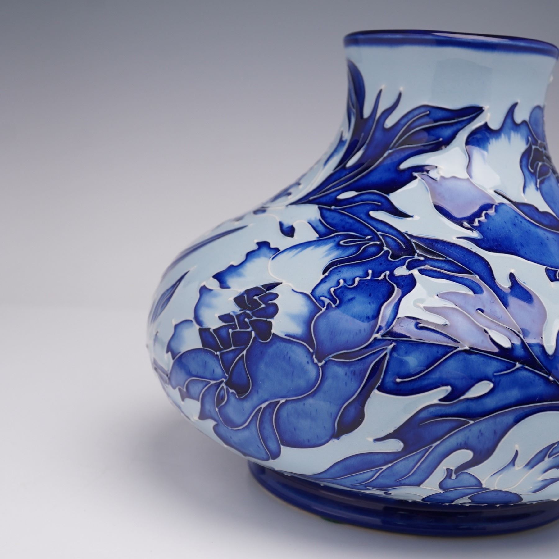 Moorcroft Pottery Vase, Blue on Blue Peony by Philip Gibson