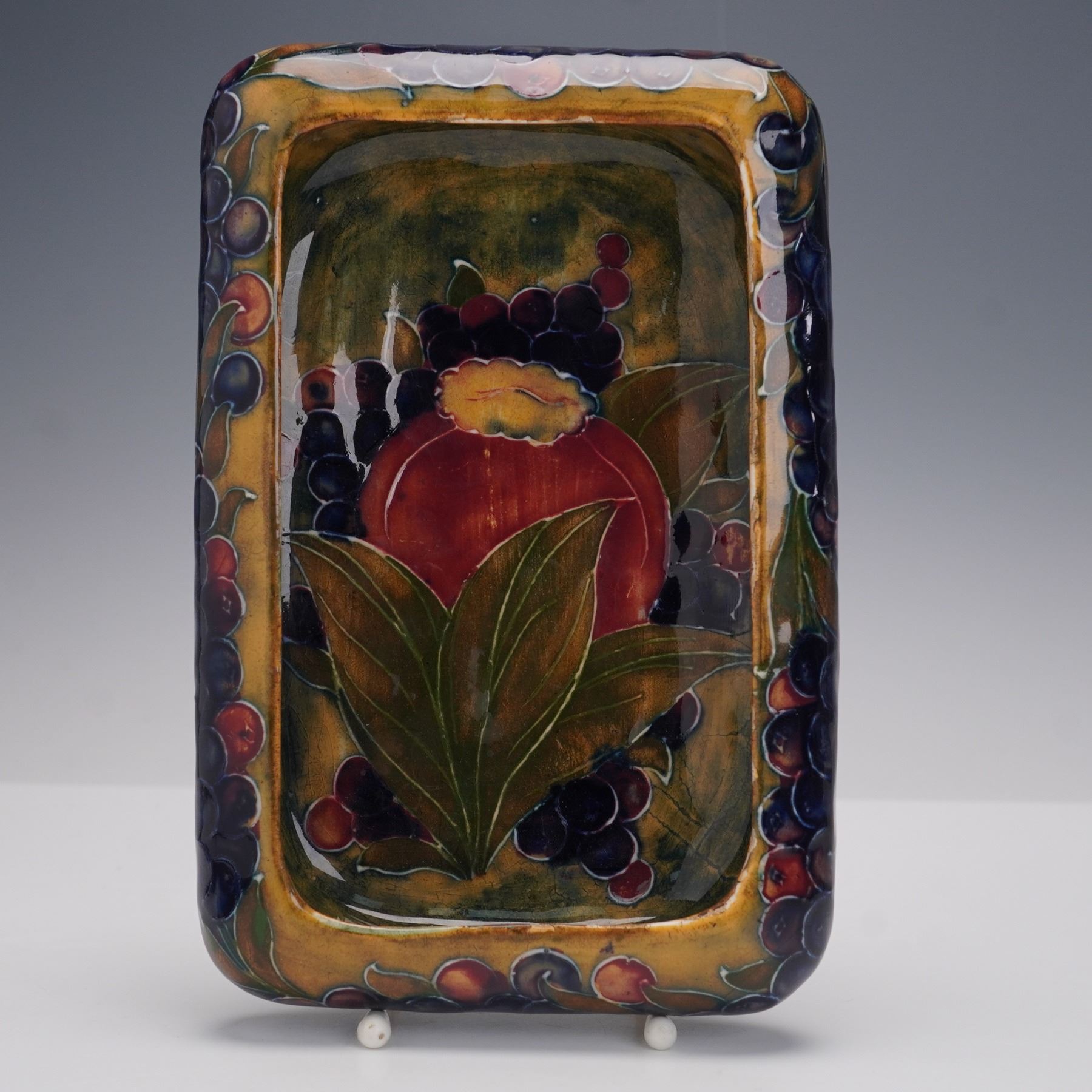 Moorcroft Pottery by William Moorcroft, Rectangle Tray Pomegranate on Ochre