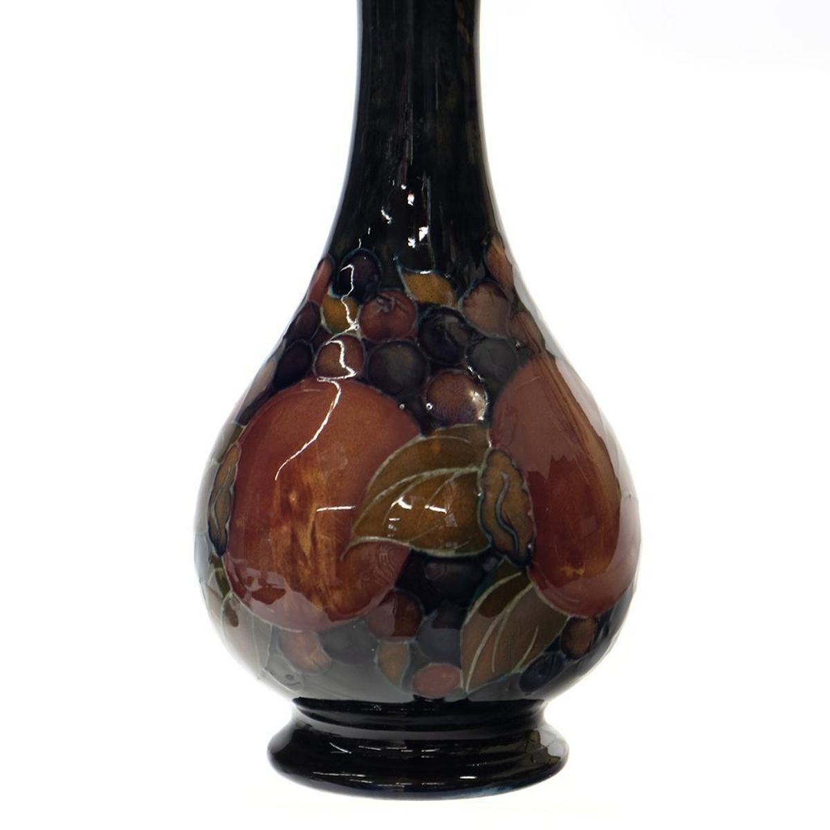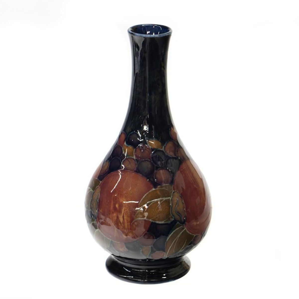 Two vases, Fruit and Floral decoration. Greatest height 6in. (15cm) Underglaze stamp on base. Condition: Very good, no chips or cracks