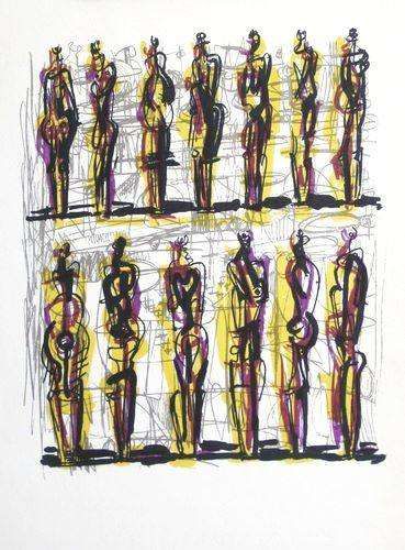 Moore Original Lithograph "Thirteen Standing Figures" - Original Lithograph. Catalogue Reference: Cramer 41. Executed In 1958 And Printed In London By Curwin Prints. This Lithograph Is A Beautiful Impression On Handmade Wove Paper (Bearing The Henry Moore Watermark) - Professionally Framed & Matted - Comes With Certificate - -