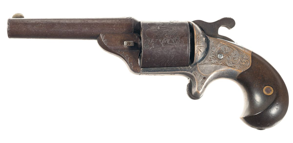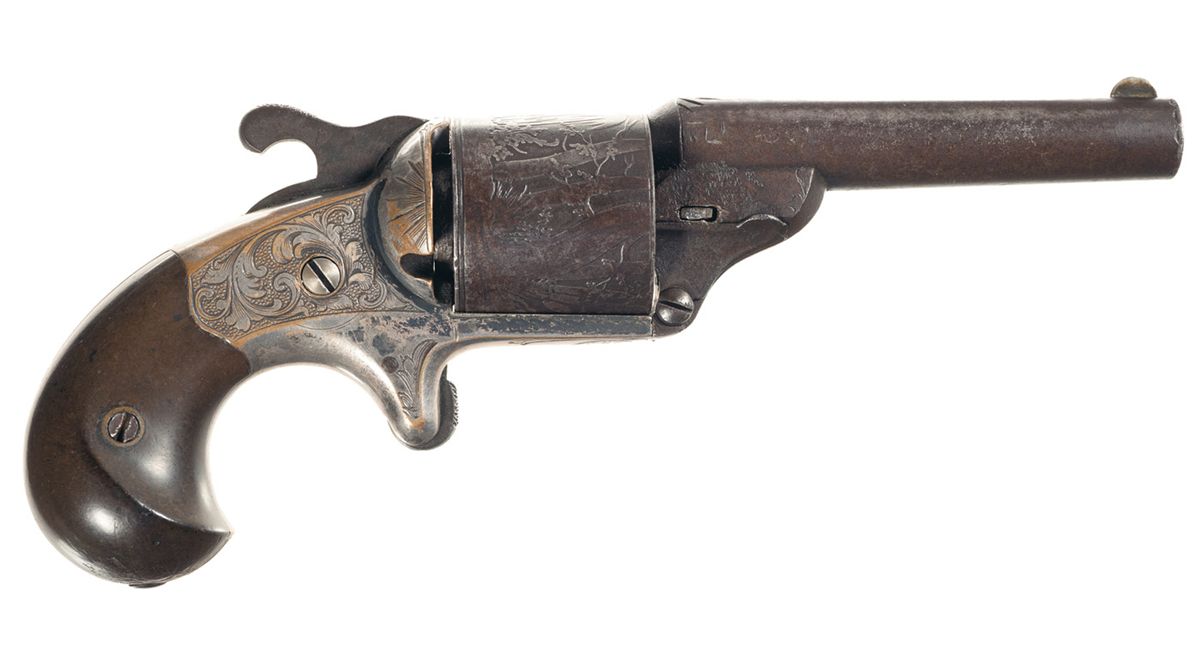 Moore's Patent Teat-Fire Revolver with Unique Etched and Engraved Cylinder Scene