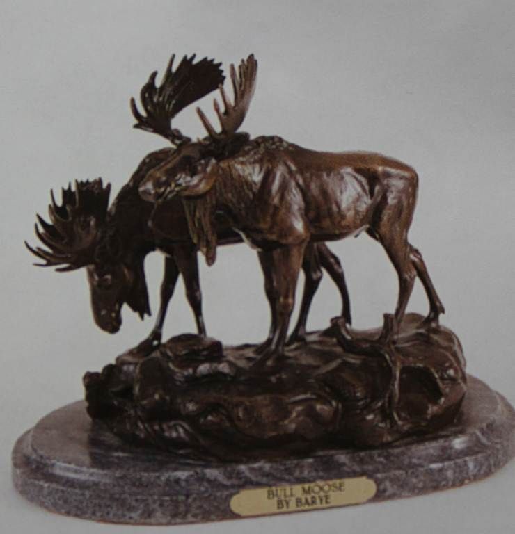 "Moose" Bronze Sculpture - After Barye - Museum Brown Finish - Mounted On A Fine Italian Marble Base - Beautifully Detailed - Signed - Mint Condition - 10"H X 12"W - Lost Wax Cast Bronze