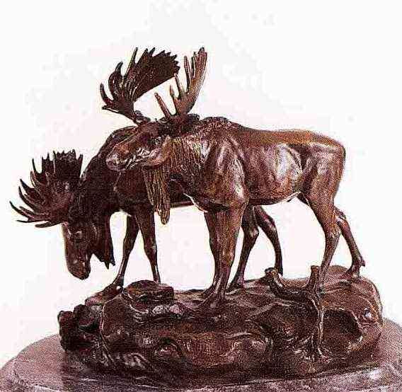 "Moose" Bronze Sculpture - After Barye - Museum Brown Finish - Mounted On A Fine Italian Marble Base - Beautifully Detailed - Signed - Mint Condition - 10"H X 12"W - Lost Wax Cast Bronze