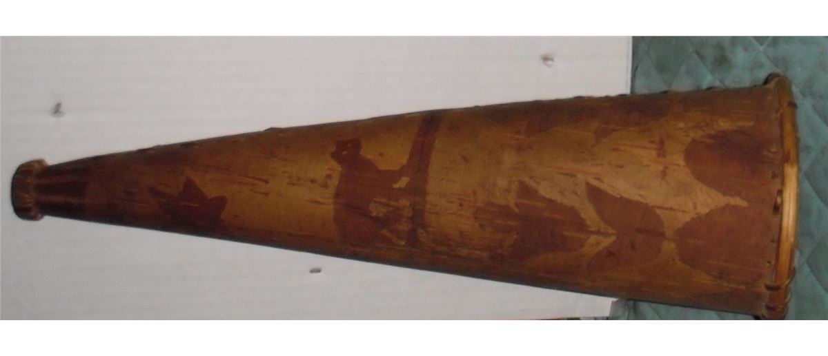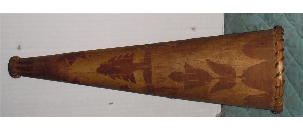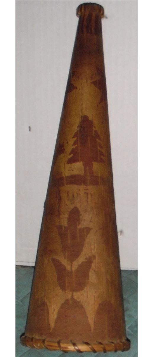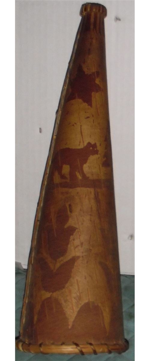 Moose call artistic collectible and very rare unique old and still like new as well kept... is this horn in birch bark with 2 colours so you can see the different scenes: animal, wild flowers, trees, stars, as is great condition and very old and thick, for your collection or as a perfect gift !