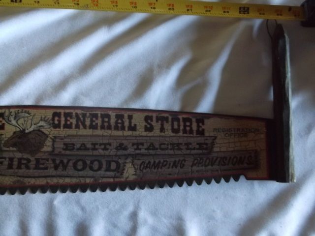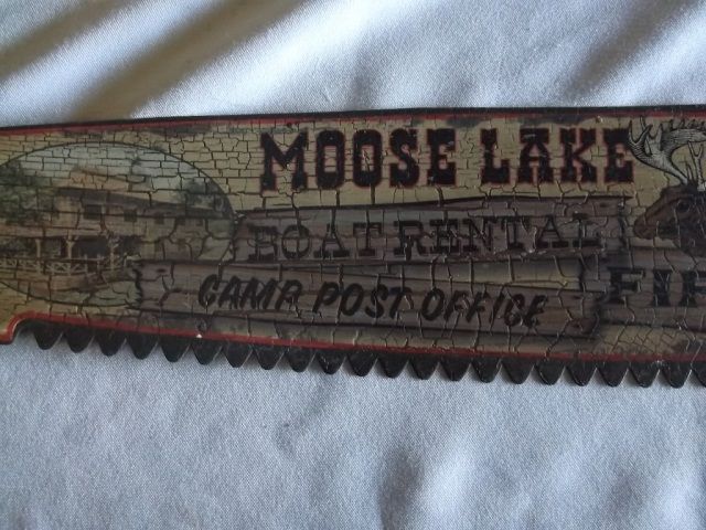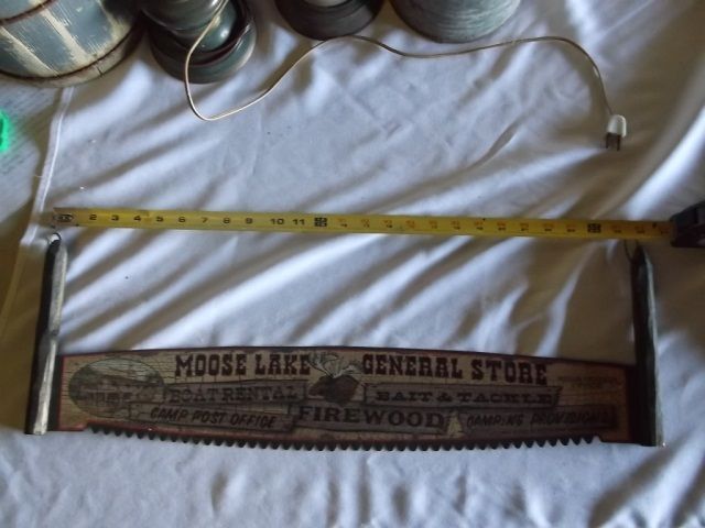 Hand Made Miniature Saw Sign Moose Lake/General Store approx 25 1/2" Long