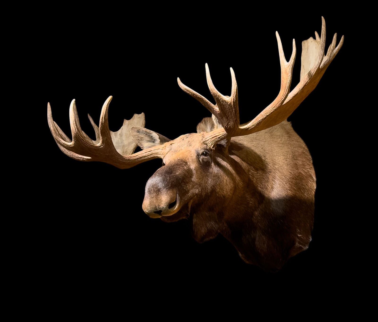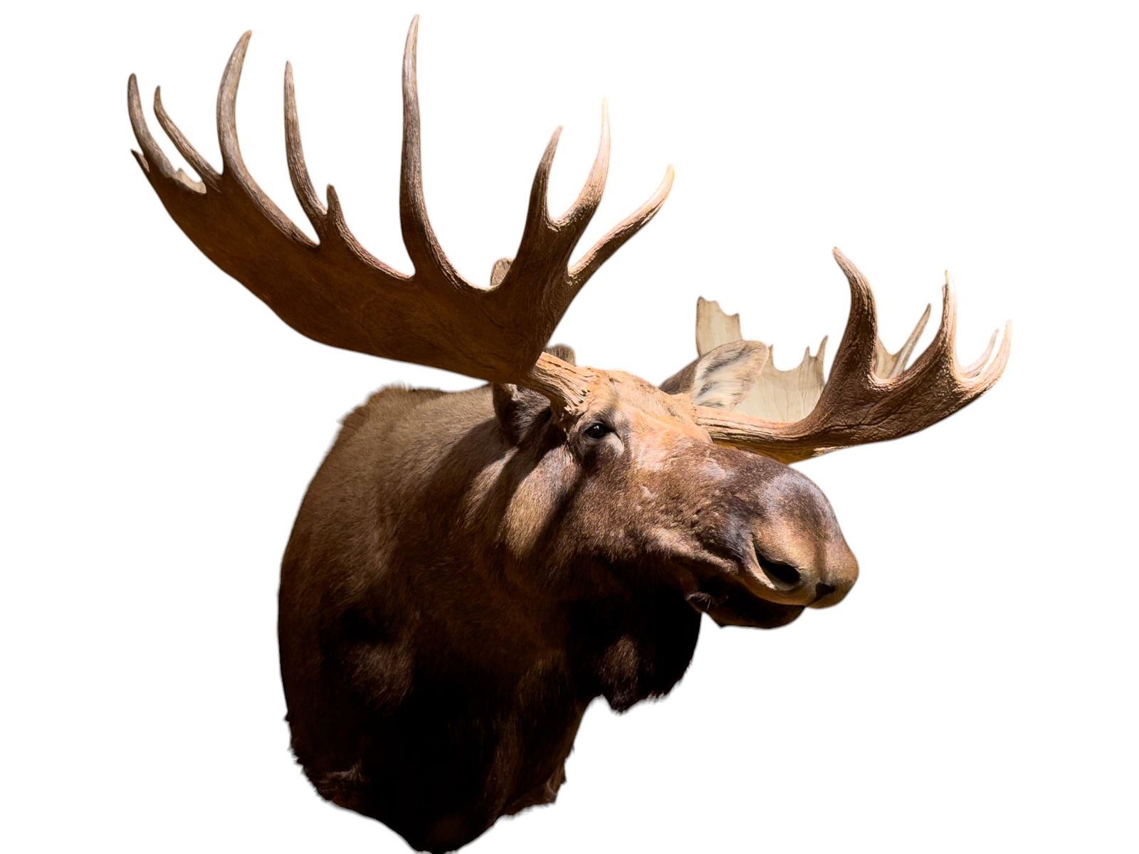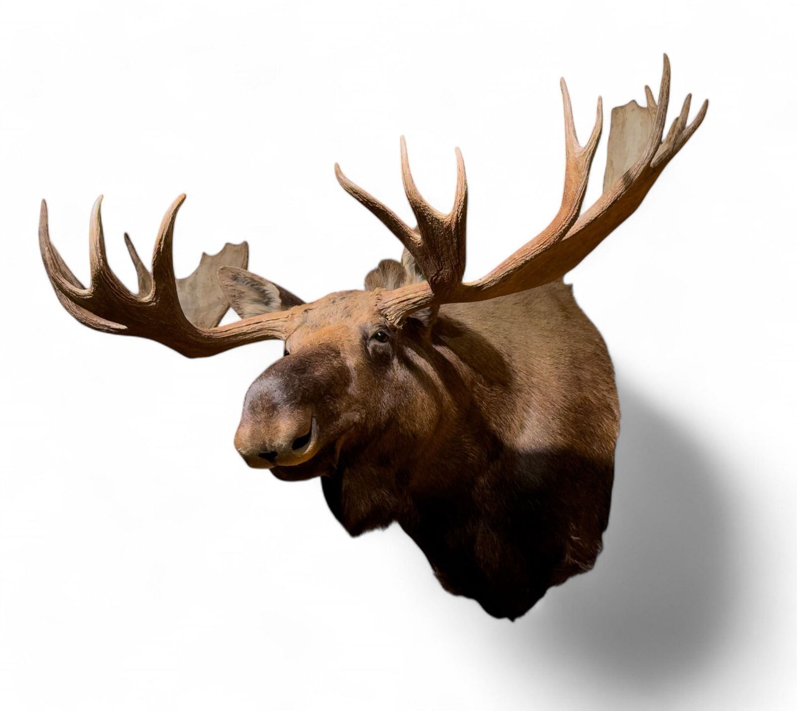 Moose shoulder mount approx. 44" tall, 72" wide, & 56" deep. Item weighs approx. 100 lbs. Cost for mounting is~$1000. Taxidermy.