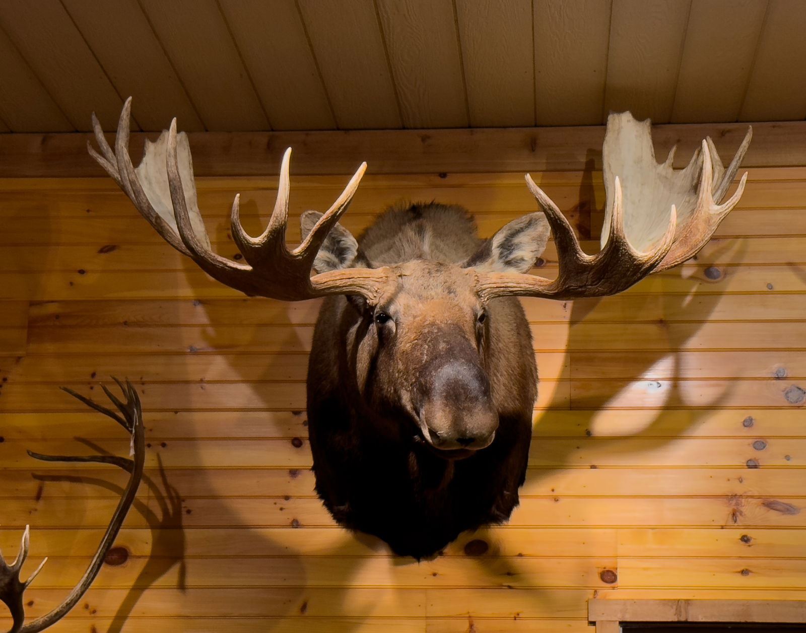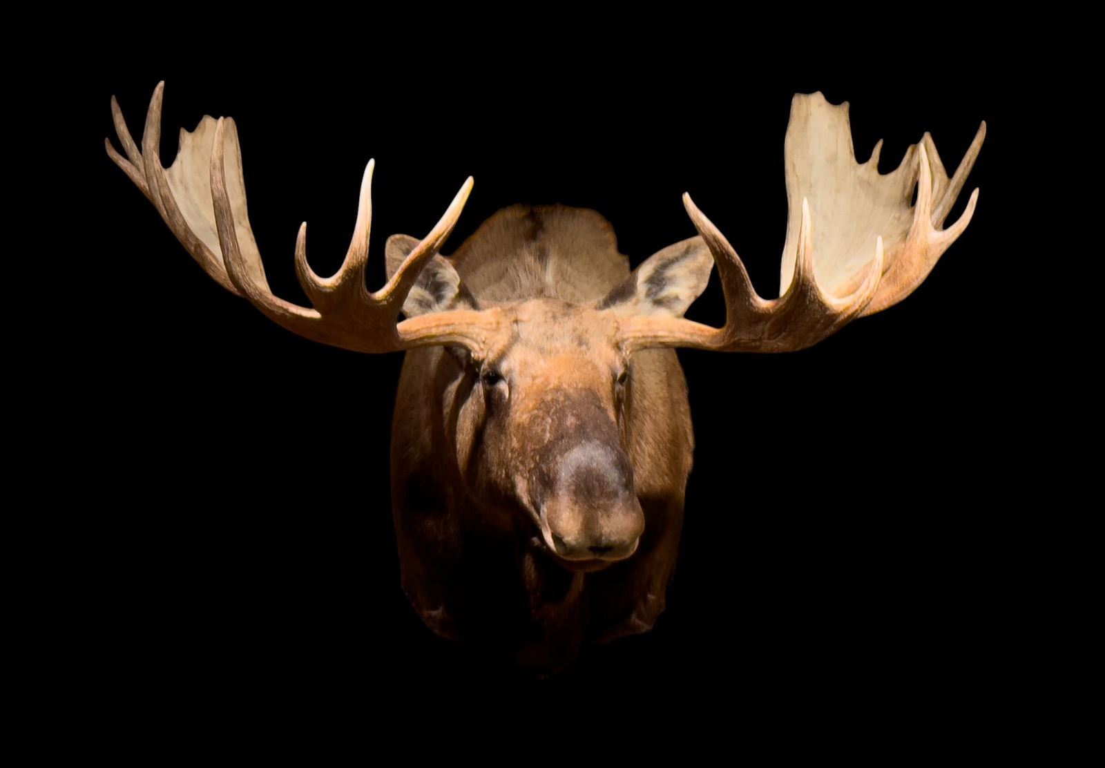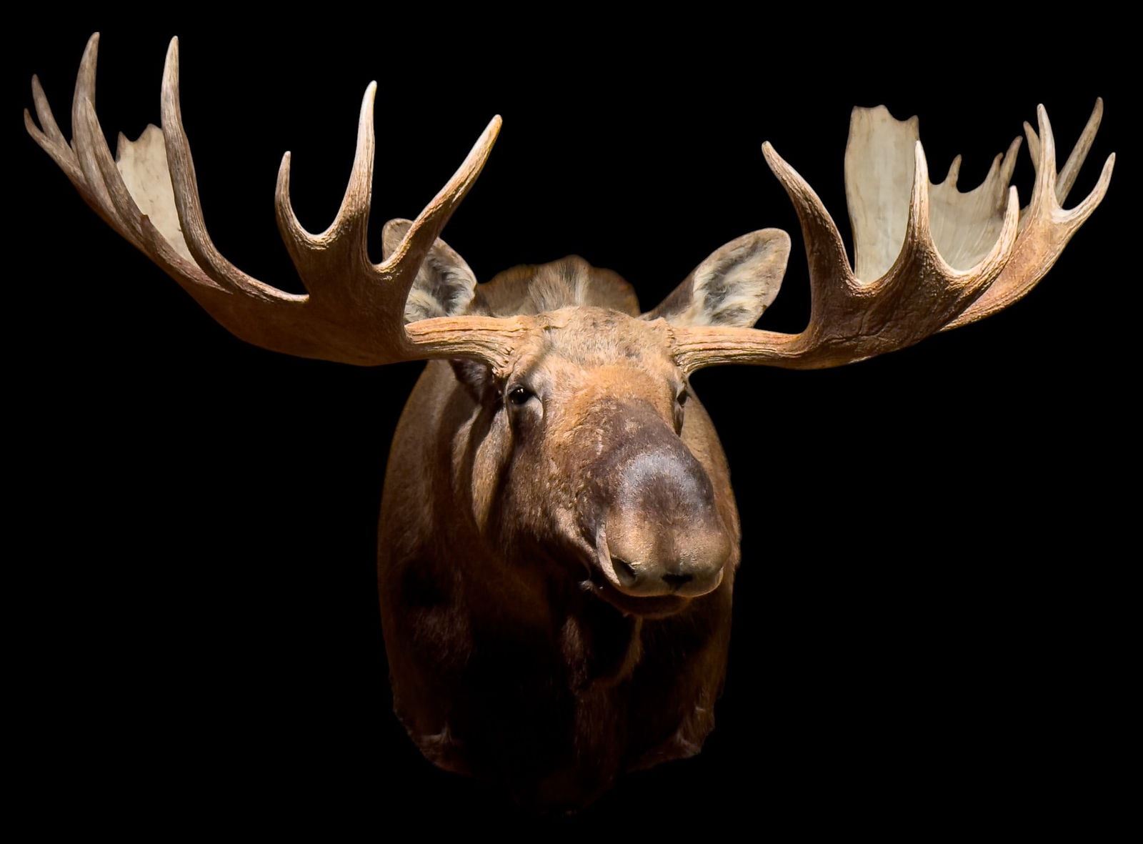 Moose shoulder mount approx. 44" tall, 72" wide, & 56" deep. Item weighs approx. 100 lbs. Cost for mounting is~$1000. Taxidermy.