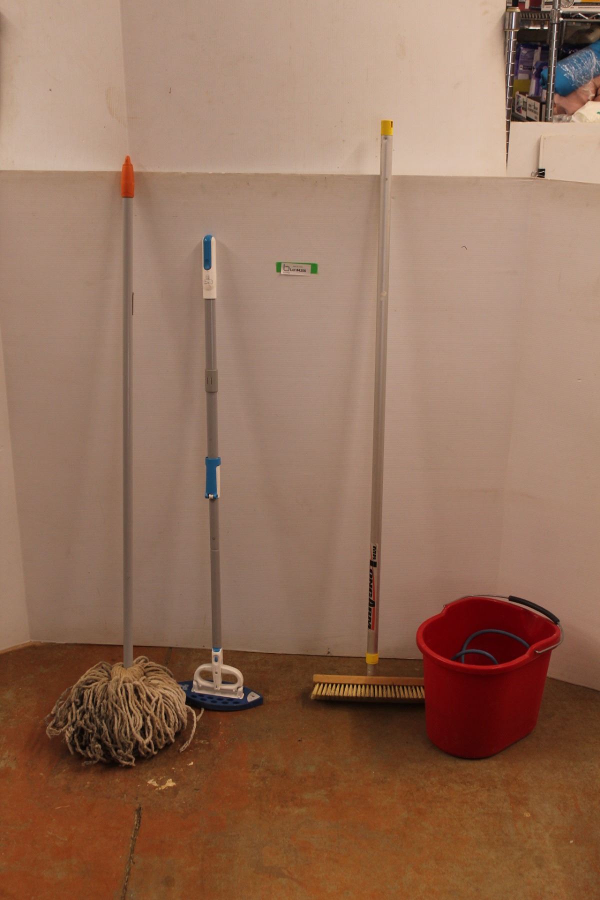 *Mop, Bennet Deck Scrub Brush w/Adjustable Handle, Mr. Clean Mop, Pail & 10' 3 way Female End Extension Cord