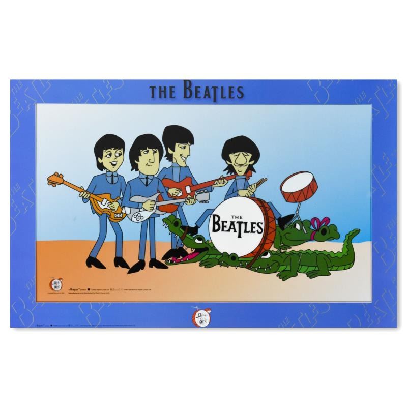 "Mop Tops and Crocs" is a limited edition sericel inspired by The Beatles Saturday Morning Cartoon series. This piece is from an edition of 500. This piece comes matted. Includes Certificate of Authenticity. Measures approx. 28" x 18" (matting), 24" x 14" (image).
