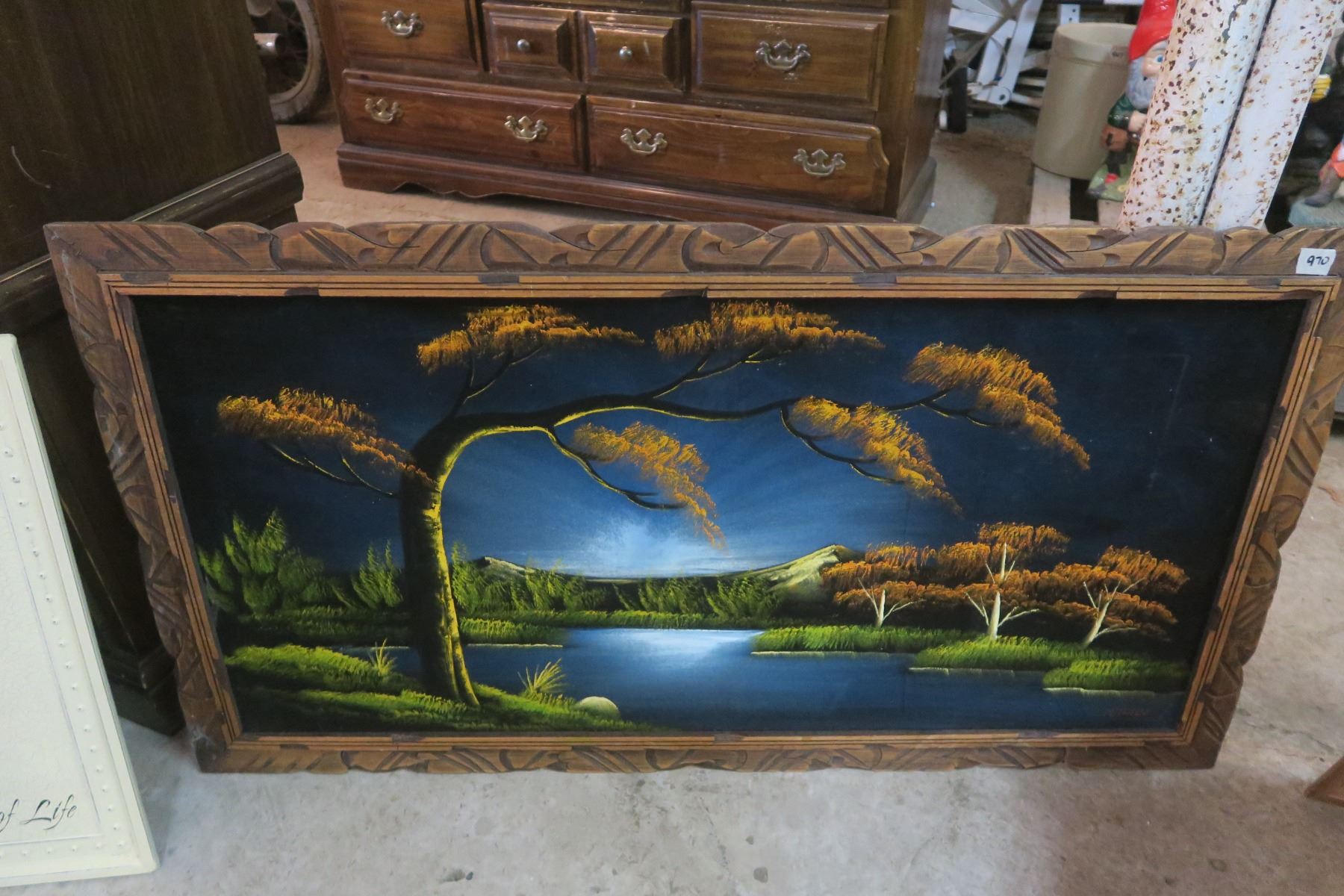 Mopan Landscape Fabric Painting in Frame - 50" x 26.5"