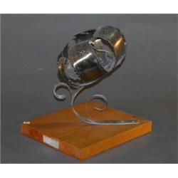 Roberto Morassi (1919-present) Strange Flower. (1993) 14" high, stainless steal. Morassi was one of the leaders of the mid-century revolution of Latin American artists who sought to escape the bonds of the figurative form and representational art that dominated South America.