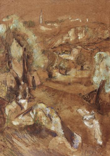 Mordechai Levanon, 1901 - 1968, Landscape, Gouache and watercolor, 33x23 cm, Signed, , , , ,
