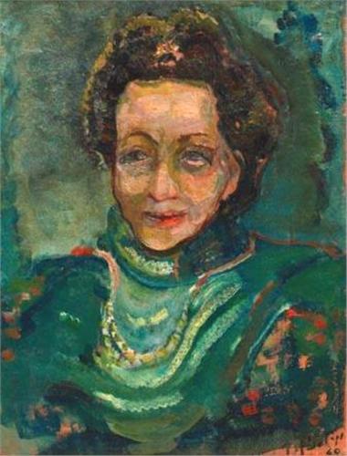 Mordechai Levanon, 1901 - 1968, Portrait of a Woman, 1960, Oil on canvas, 66x50 cm, Signed and dated, , , Rivka and Gabriel Talpir, Tel-Aviv Collection, ,