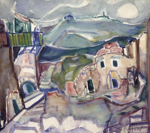 Mordechai Levanon, 1901 - 1968, Safed, Watercolor, 32x36 cm, Signed., , , , ,