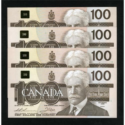 <B>More 1988 $100s Choice Crisp Uncirculated or Better</B></I><BR> This lot has the BC-60a-i number that has the clear back plate number. The other three notes carry Charlton numbers 60b; 60c; and 60d.<BR><I>From The Thomas M. Flynn Collection</B></I><BR><BR><b>Shipping:</b> Coins & Currency (<a target="_blank" href="http://www.heritageauctions.com/common/shipping.php">view shipping information</a>)