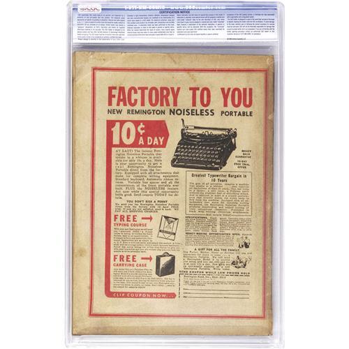 <B>More Fun Comics #10 (DC, 1936) CGC GD+ 2.5 Cream to off-white pages.</B></I> Like all of the early issues of this title, this one's hard to find (Gerber rates it a "7", or "scarce") and perhaps nonexistent in high grade (Overstreet doesn't list a value above VF, and the top CGC copy is a 6.5). This comic features two early creations by Jerry Siegel and Joe Shuster: Doctor Occult, who would go on to be DC's first comic book superhero, and the swashbuckling Henri Duval. The cover is by Vincent Sullivan, and Creig Flessel provides additional art. Overstreet 2006 GD 2.0 value = $545. CGC census 7/06: 1 in 2.5, 2 higher. <BR><BR><B>Important notice:</B> Heritage usually auctions material at the rate of 200-250 lots per hour. On some occasions eBay Live bid software or the Internet may not be able to keep up with the pace of the auction. We recommend placing a realistic absentee bid now as insurance to avoid disappointment. Occasionally the auctioneer may eliminate or reject an eBay Live bid, and the auctioneer may also reopen a lot after the close of the eBay live bidding (usually because we missed an audience bid), and may reject your bid even if it shows you as the winning bidder. By bidding via eBay Live, you agree that Heritage may award the lot to another bidder at its sole discretion under the circumstances described above or any other reasonable circumstances. Since eBay bids are not shown to us until we open the lot on the floor, we treat those bids just like floor bids. In most cases the floor responds before the eBay bid is presented to us, due to Internet lag time, so for consistency we have made it a policy that floor bids are always considered first over tie eBay live bids. Also please note that all Heritage lots purchased through eBay Live carry a 22.5% Buyer's Premium. Please make sure you read the Terms and Conditions before you bid. This lot is being auctioned in conjunction with a live floor auction by Heritage Auction Galleries. All final auction and invoice information will be supplied by Heritage Auction Galleries, and all other information should be considered preliminary. Lot:41001 <BR><BR><B>Winning Notification and Billing:</B> After the FINAL session in this auction is complete, Heritage will send e-mail and snail mail invoices. This process normally takes several days. All final auction and invoice information will be supplied by Heritage Auction Galleries, and all other information should be considered preliminary. <BR><BR>This auction will be conducted on a live auction floor and over the Internet through eBay Live. If you choose to place an absentee bid, please take a moment to <font color='#0000ff'><u><a href='http://pages.ebay.com/liveauctions/help/before/laabsentee.html'>learn how eBay Live absentee bidding works</a></u></font><font color='#000000'>