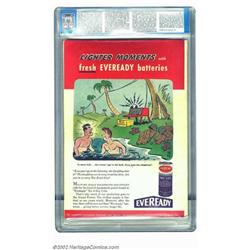 More Fun Comics #101 (DC, 1945) CGC VF+ 8.5 Off-white to white pages. The brilliant yellow Green Arrow and Speedy cover gives no hint to the importance of this issue. But inside Superboy makes his first appearance (with origin) and the Spectre makes his last appearance under the title that gave him his start. This exceptional copy has rich color and a very sharp appearance. CGC notes "Slight foxing on pages" but there's no hint of foxing on the exterior. A major key worthy of anyone's collection! Overstreet 2002 VF 8.0 value = $5,000. Important notice: We expect to be auctioning lots at the rate of 200-250 per hour. Sometimes eBay Premier live bid software cannot keep up with that pace, so we strongly recommend that you place a realistic proxy bid now as insurance to avoid disappointment. Also please note that all Heritage/CAA lots purchased through eBay Premier carry a 20% Buyer's Premium. Please make sure you read the Terms and Conditions.