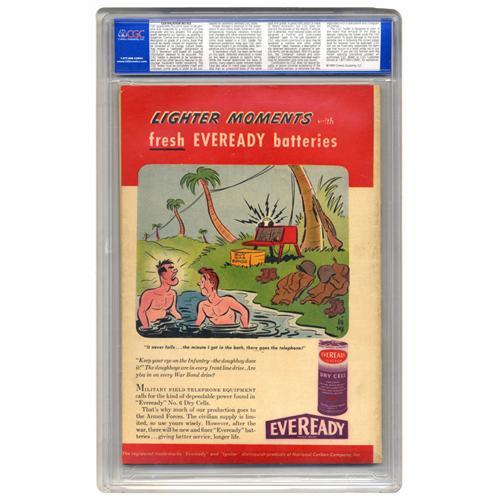 <B>More Fun Comics #101 Double Cover (DC, 1945) CGC VF/NM 9.0 Off-white to white pages.</B></I> A double-cover copy of a true key book is a collecting gem by any measure. Only one book has ever received a higher grade from CGC to date. Superboy made his very first appearance in this issue, despite not being mentioned on the cover! And he's been a popular character ever since, starring in <B>Adventure Comics</B></I>, then his own book, and of course in the "Smallville" TV show these days. The remainder of the issue's star-studded lineup includes Green Arrow, Aquaman, and making his last appearance in this series, the Spectre. CGC notes, "1st cover 8.5, interior cover 9.0." Overstreet 2006 VF/NM 9.0 value = $9,968 NM- 9.2 value = $14,000. CGC census 3/06: 2 in 9.0, 1 higher.