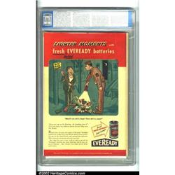 More Fun Comics #102 (DC, 1945) CGC NM- 9.2 Off-white pages. Superboy's second appearance marks this issue, along with Henry Boltinoff's first cover rendering of "America's Favorite Laugh Team," Dover and Clover. Only two years prior to the demise of this historic title, funny features and superheroes were still sharing billing. The condition of this copy ranks as the highest yet assigned by CGC for this particular issue. Overstreet 2002 NM 9.4 value = $1,400. Important notice: We expect to be auctioning lots at the rate of 200-250 per hour. Sometimes eBay Premier live bid software cannot keep up with that pace, so we strongly recommend that you place a realistic proxy bid now as insurance to avoid disappointment. Also please note that all Heritage/CAA lots purchased through eBay Premier carry a 20% Buyer's Premium.