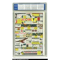 More Fun Comics #36 Mile High pedigree (DC, 1938) CGC NM+ 9.6 Off-white to white pages. Most fans of Golden Age comics are aware of the now-legendary collection of comics once owned by Edgar Church, and how clean and fresh the books appear. This early issue of More Fun is no exception. For a book printed in 1938, this looks positively brand spankin' new. The large areas of white on the cover are blinding, and the inks fresh and vibrant. Watch out for those corners; they look razor sharp! Inside, we have contributions from Bob Kane, a story from Jerry Siegel and Joe Shuster, and the Masked Ranger and Pedro begin. All this, plus a funny "Our Gang" style cover by Craig Flessel make this book a winner. CGC notes: "Very minor amount of color touch on cover." This copy is rated highest in the current CGC census, with the next-best copy coming in at only FN+ 6.5. If you want the very best, this is it. Overstreet 2003 NM 9.4 value = $2,150. Important notice: Heritage usually auctions material at the rate of 200-250 lots per hour. On some occasions eBay Live bid software or the Internet may not be able to keep up with the pace of the auction. We recommend placing a realistic absentee bid now as insurance to avoid disappointment. Occasionally the auctioneer may eliminate or reject an eBay Live bid, and the auctioneer may also reopen a lot after the close of the eBay live bidding (usually because we missed an audience bid), and may reject your bid even if it shows you as the winning bidder. By bidding via eBay Live, you agree that Heritage may award the lot to another bidder at its sole discretion under the circumstances described above or any other reasonable circumstances. Also please note that all Heritage lots purchased through eBay Live carry a 20% Buyer's Premium. Please make sure you read the Terms and Conditions before you bid.