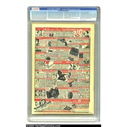 More Fun Comics #39 Mile High pedigree (DC, 1939) CGC NM- 9.2 Off-white to white pages. Santa seems to be having a workplace problem on this Christmas cover! Inside, you'll find Ginger Snap by Bob Kane, plus art and story from Jerry Siegel and Joe Shuster. This Mile High copy is stunning; great color and gloss, a smooth spine, sharp edges and corners - wow! There is a small color flake off near the top left-hand corner, but it's a minor thing compared to the overall look of this book. Thank you, Edgar Church, for saving you comics in such a nice way! Overstreet 2003 NM 9.4 value = $2,150 Important notice: Heritage usually auctions material at the rate of 200-250 lots per hour. On some occasions eBay Live bid software or the Internet may not be able to keep up with the pace of the auction. We recommend placing a realistic absentee bid now as insurance to avoid disappointment. Occasionally the auctioneer may eliminate or reject an eBay Live bid, and the auctioneer may also reopen a lot after the close of the eBay live bidding (usually because we missed an audience bid), and may reject your bid even if it shows you as the winning bidder. By bidding via eBay Live, you agree that Heritage may award the lot to another bidder at its sole discretion under the circumstances described above or any other reasonable circumstances. Also please note that all Heritage lots purchased through eBay Live carry a 20% Buyer's Premium. Please make sure you read the Terms and Conditions before you bid.
