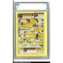 More Fun Comics #49 Mile High pedigree (DC, 1939) CGC NM 9.4 white pages. Of the pre-hero More Funs (#1-51) the last ten feature great adventure covers, making them more desirable among collectors. This Fred Guardineer cover is made all the sweeter by its perfect preservation -- what a book! A powerful specimen from the Mile High collection that looks every bit as perfect as you would expect. According to CGC's census, this is the best grade they have given this particular issue. Most likely the best copy in existence. Overstreet 2002 NM 9.4 value = $1,800. Important notice: We expect to be auctioning lots at the rate of 200-250 per hour. Sometimes eBay Premier live bid software cannot keep up with that pace, so we strongly recommend that you place a realistic proxy bid now as insurance to avoid disappointment. Also please note that all Heritage/CAA lots purchased through eBay Premier carry a 20% Buyer's Premium.
