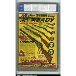 More Fun Comics #75 (DC, 1942) CGC FN 6.0 Cream to off-white pages. Superb cover colors make this copy stand out from the crowd. The spine is tight, the pages are decent, and there are no major defects on the back cover. Only a 2.5" crease in the lower right corner of the front cover keep this out of the higher grade range. A new origin for the Spectre is told in this issue, and the cover features a Nazi spy ring and a photo of Adolf Hitler. Spectre artist Bernard Baily and Jerry Siegel art. Overstreet 2002 FN 6.0 value = $681. Important notice: We expect to be auctioning lots at the rate of 200-250 per hour. Sometimes eBay Premier live bid software cannot keep up with that pace, so we strongly recommend that you place a realistic proxy bid now as insurance to avoid disappointment. Also please note that all Heritage/CAA lots purchased through eBay Premier carry a 20% Buyer's Premium.