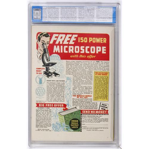 <B>More Fun Comics #93 Mile High pedigree (DC, 1943) CGC NM+ 9.6 Off-white to white pages.</B></I> Thank you Edgar Church for saving your comic books in such nice condition for us to enjoy today! And there's plenty to enjoy, too, in this spectacular copy, including stories starring Johnny Quick, Aquaman, Dr. Fate, and the Spectre, not to mention the very first appearance of those twin detectives, Dover and Clover! Overstreet 2006 NM- 9.2 value = $1,175. CGC census 3/07: 1 in 9.6, none higher.<BR><BR><b>Shipping:</b> Slabbed Comic (<a target=""_blank"" href=""http://www.heritageauctions.com/common/shipping.php"">view shipping information</a>)
