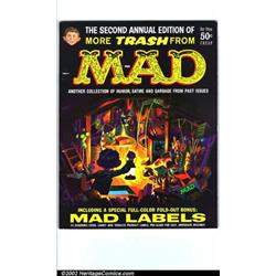 More Trash from Mad #2 Gaines File pedigree (EC, 1959). Difficult to find early special. Great cover and sticker bonus insert. A photo-certificate attesting to the Gaines File pedigree will be issued to the buyer of this lot. Overstreet 2001 NM 9.4 value = $150. Important notice: We expect to be auctioning lots at the rate of 200-250 per hour. Sometimes eBay Premier live bid software cannot keep up with that pace, so we strongly recommend that you place a realistic proxy bid now as insurance to avoid disappointment. Also please note that all Heritage/CAA lots purchased through eBay Premier carry a 20% Buyer's Premium.