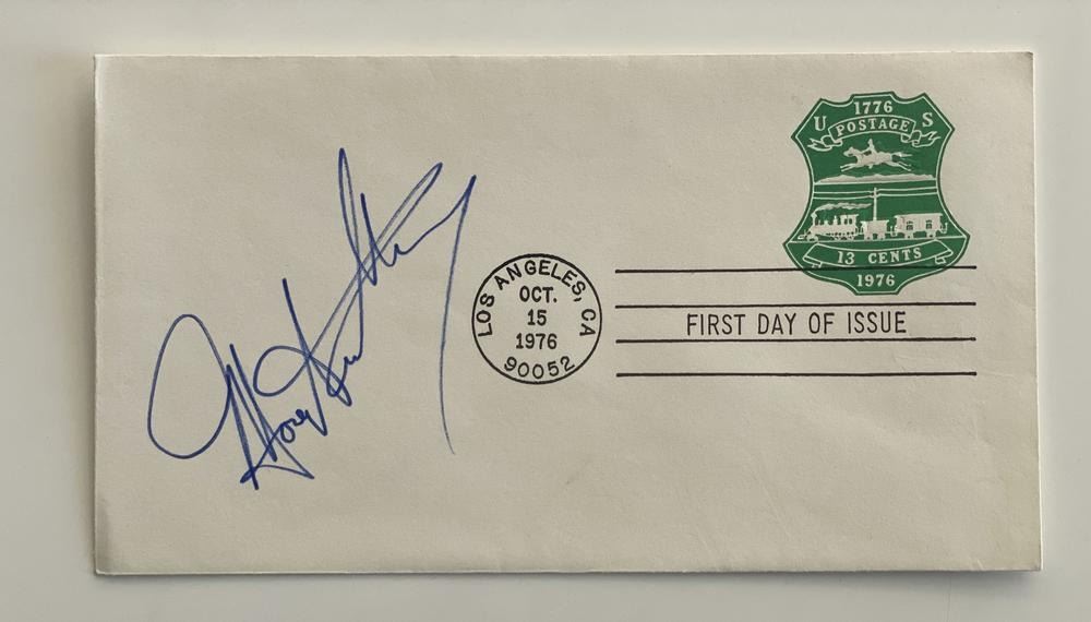 Morey Amsterdam signed first-day cover. Los Angeles, California. October 15, 1976. 6x4 inches