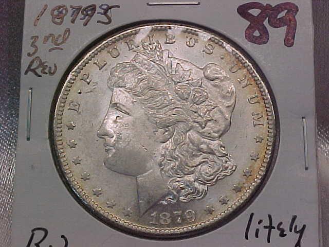 Morgan $ 1879S 3rd rev BU light toning