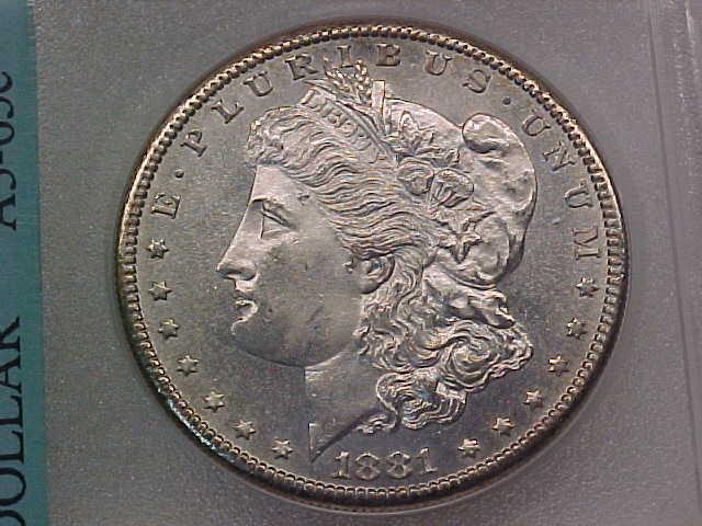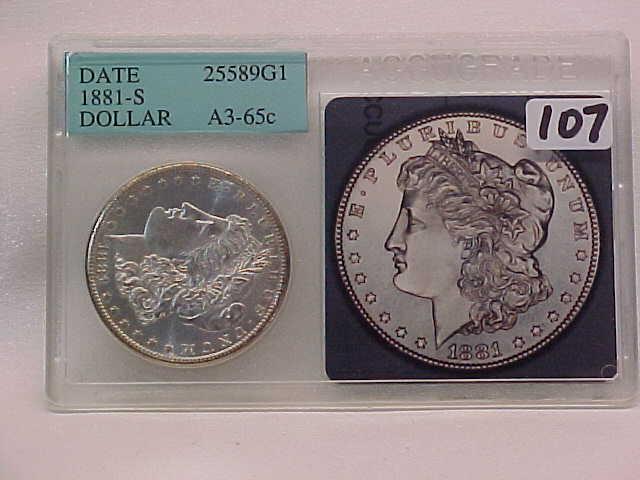 Morgan $ 1881S Accugrade A3-65c (full strike, dull surface, MS65)