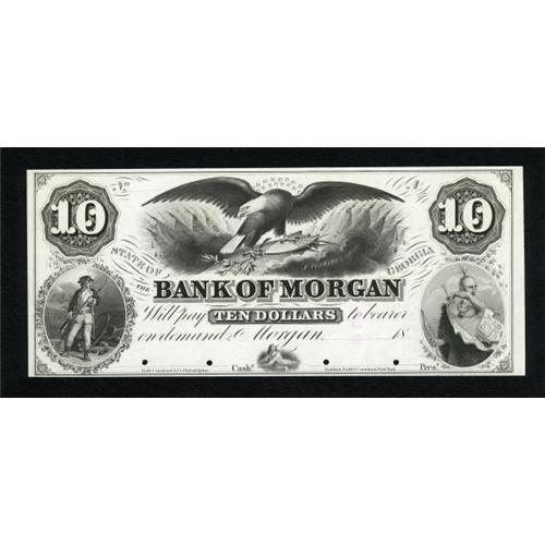 <B>Morgan, GA- Bank of Morgan</B></I> $10 18__ G12 Proof<BR> This is a beautiful Proof from the 1990 auction of the ABNCo archives. Pre-printing paper crinkles are noticed. <B>Choice Crisp Uncirculated, </B></I>4 POC.<BR><BR><b>Shipping:</b> Coins & Currency (<a target="_blank" href="http://www.heritageauctions.com/common/shipping.php">view shipping information</a>)