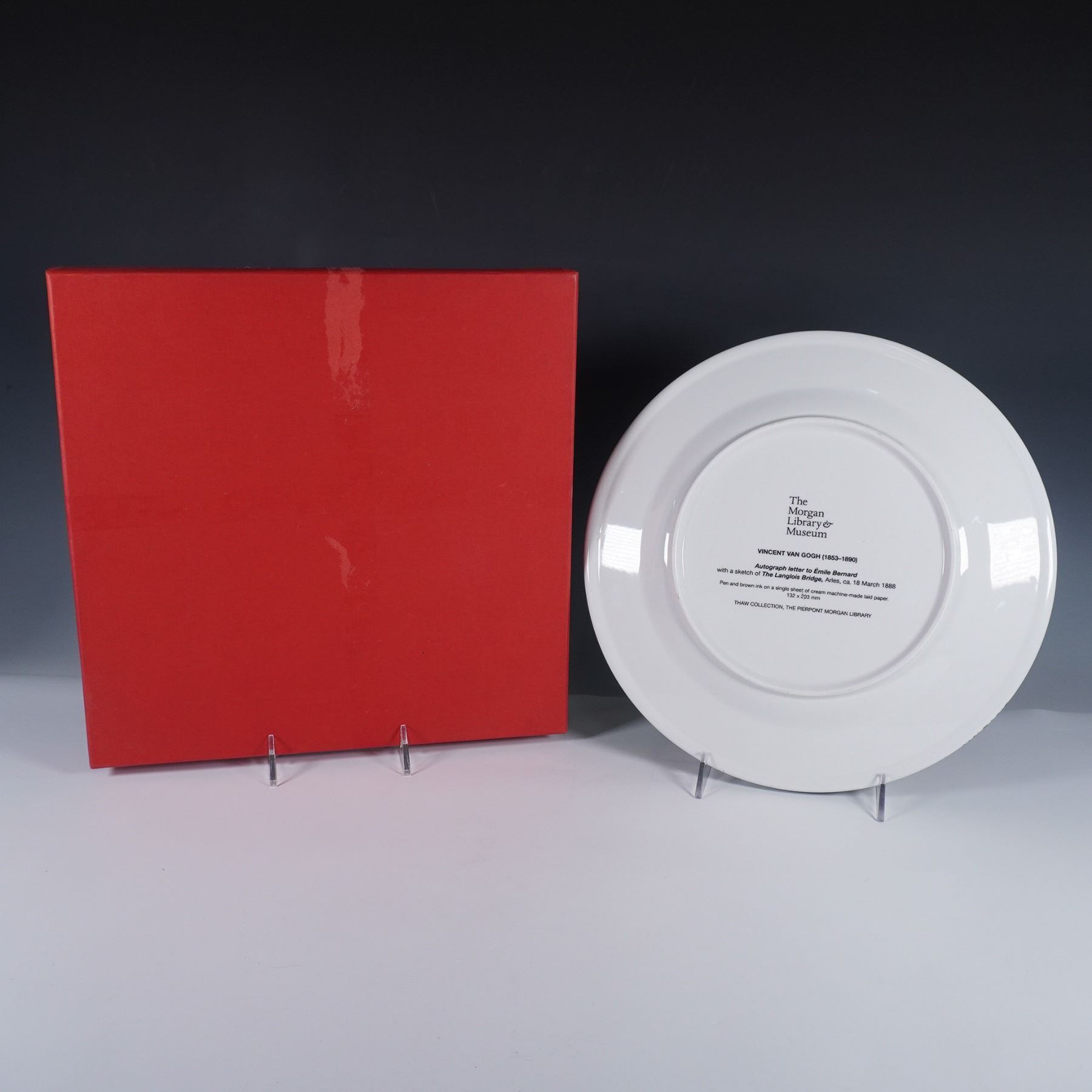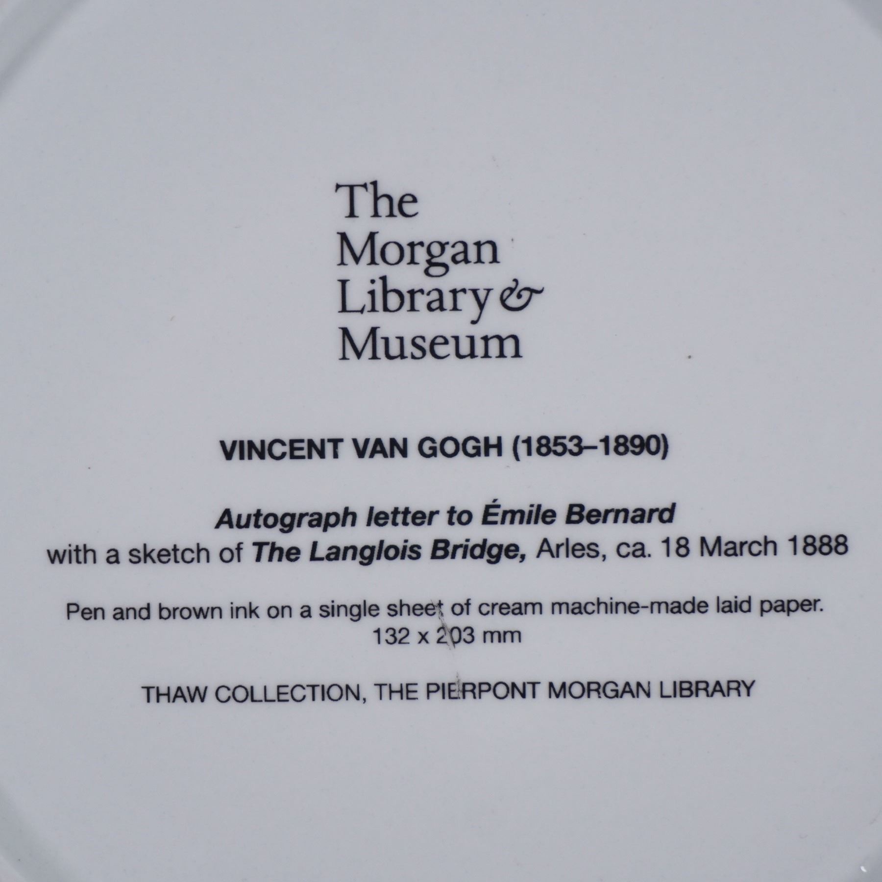 Morgan Library & Museum Vincent Van Gogh Plate featuring the Autograph letter to Emile Bernard featuring a sketch of The Langlois Bridge, Arles, ca. 18 March 1888. This item has its original box.
