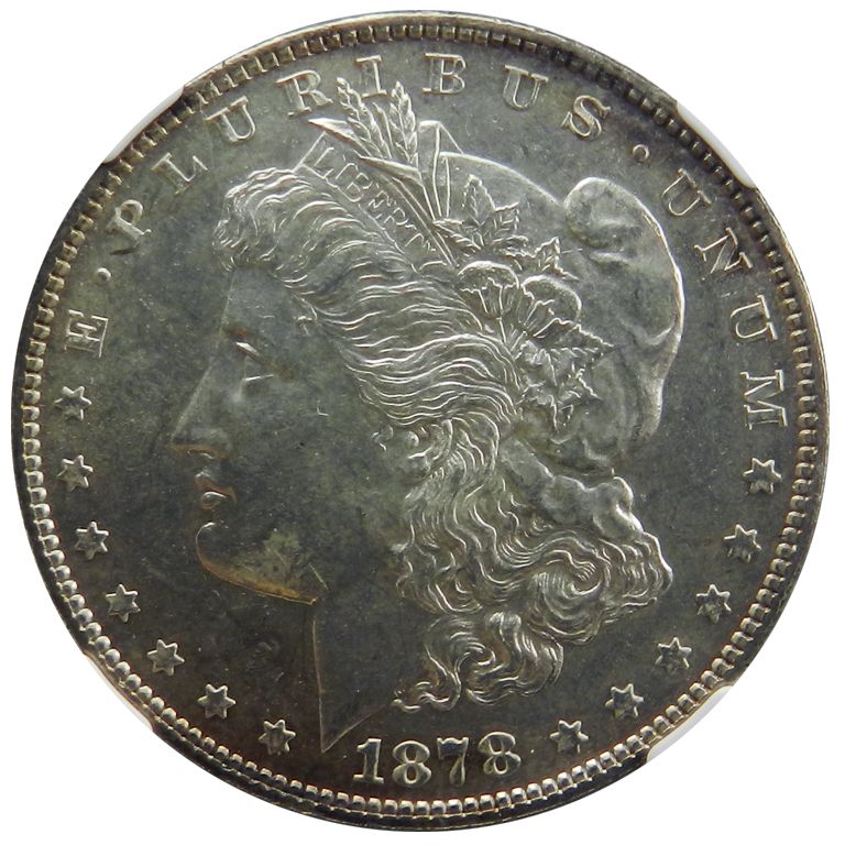Morgan Silver Dollar, 1878 7/8 Tailfeathers. NGC MS63, semi-prooflike to P/L fields, lt contact from Gem class.