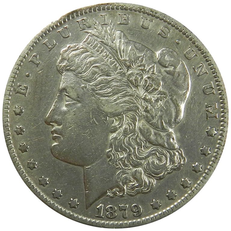 Morgan Silver Dollar, 1879-CC. Capped CC. Key date. Cleaned EF, a few lt mks, rn.