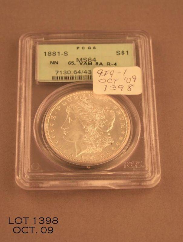 Morgan Silver Dollar dated 1881-S PCGS graded MS64 in slab. Est.: $100-$200.