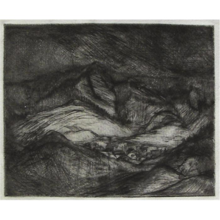 Morgan Wagner (1917-1950) Broadmoor Art Academy Etching "Storm over Pikes Peak" Unsigned from Artist Estate 4 5/8" x 5 1/2"