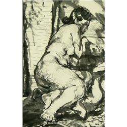 Morgan Wagner (1917-1950) (Colorado) Ink & Wash, Untitled Nude, sight size 13" x 8.5", no visible signature, from the artist's estate, Est $400 - $600