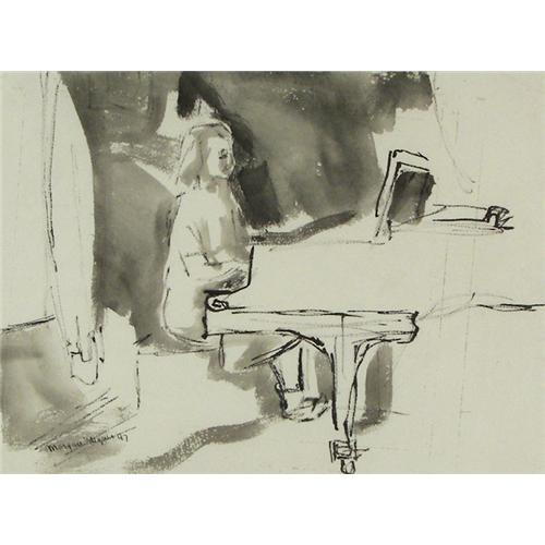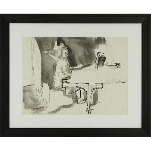 Morgan Wagner (1917-1950) Broadmoor Art Academy, Ink, Pianist, 1947, sight size 11 3/8" x 15 1/4", signed lower left