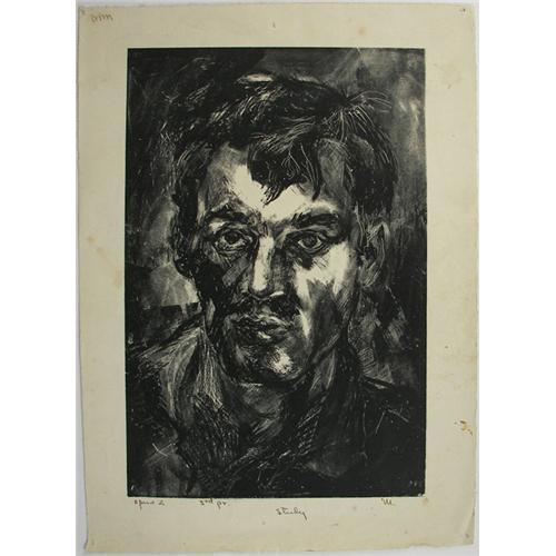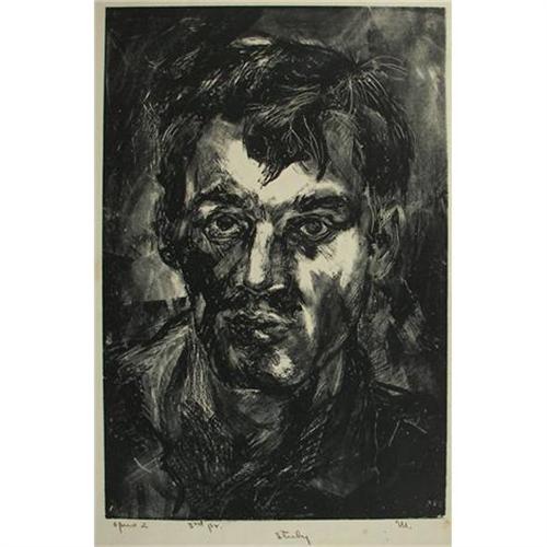 Morgan Wagner (1917-1950) Broadmoor Art Academy, Lithograph, "Self Portrait", 1943, image size 13 1/8" x 8 7/8", ink signed