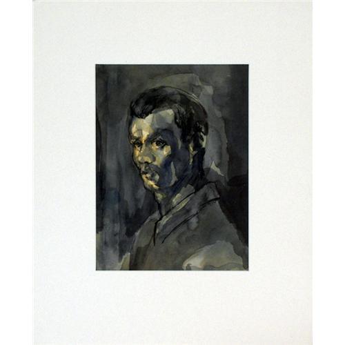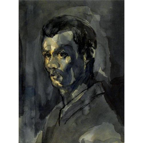 Morgan Wagner (1917-1950) Broadmoor Art Academy, Watercolor, "Self Portrait", 1945, 10" x 7 3/4", unsigned, Savageau Gallery label