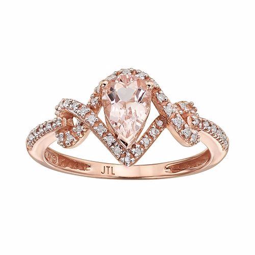 Channel an elegant look wearing this gorgeous teardrop ring. With a pear-shaped genuine morganite stone wrapped in diamond accents in a teardrop motif, this 10k rose gold ring catches the eye with breathtaking beauty. RING DETAILSWidth: .5 in.Size: 7Metal: 10k rose gold, white rhodium-plated 10k rose goldSTONE DETAILSStone type: genuine morganite Shape: pearSetting: prong DIAMOND DETAILSTotal weight: 1/8 ct.Shape: roundColor grade: I-JClarity: I2-I3Setting: prong