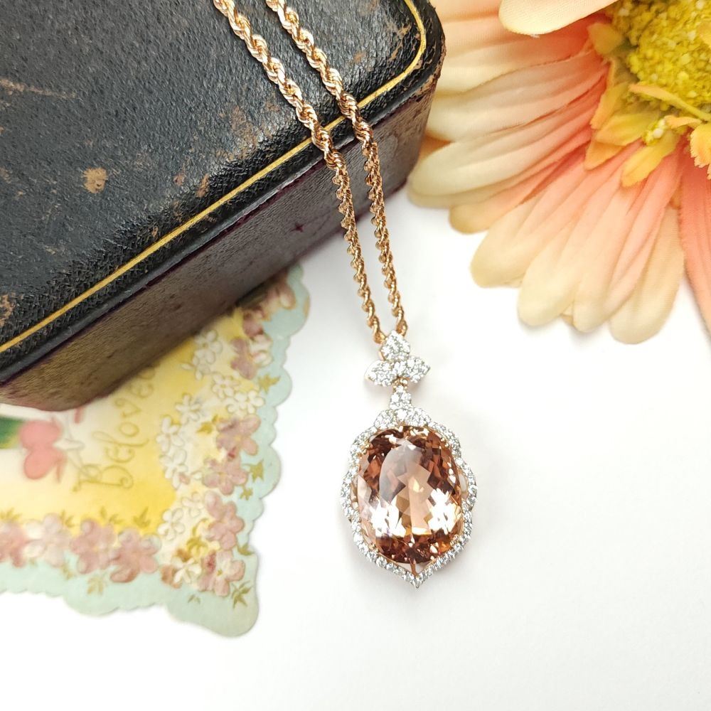 DESCRIPTION DETAIL: Genuine Morganite and Earth-Mined Diamond Necklace